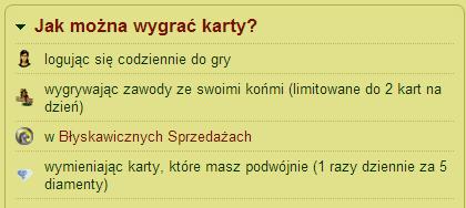 2. Jeśli twój koń wygra zawody ( za każde wygrane zawody dostaje się 1 karte - max 2 karty na dzień)
